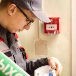 По тактическому замыслу учений, из окна первого этажа, где находятся, люди, идёт густой черный дым. Существовала угроза распространения дыма и огня по соседним помещениям. Через громко говорящую систему, сотрудник охраны объявил сигнал «ПОЖАР».