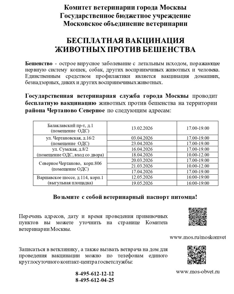| ул.Чертановская, д. 48, корп.2 (выгульная площадка) | 13.05.2026 | 16:00-19:00 | ||